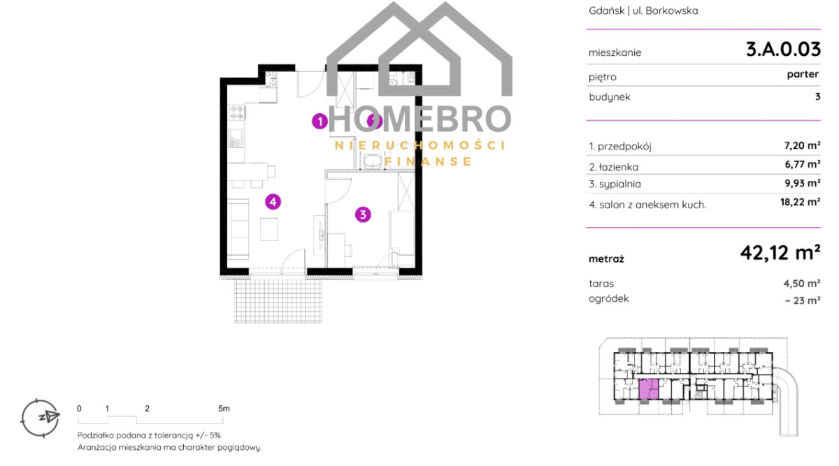 Na sprzedaż dwupokojowe mieszkanie o powierzchni 42,12 m² z ogródkiem (23 m²) położone na parterze w nowoczesnym 3 piętrowym budynku wyposażonym w cichobieżną windę oraz halę garażową.