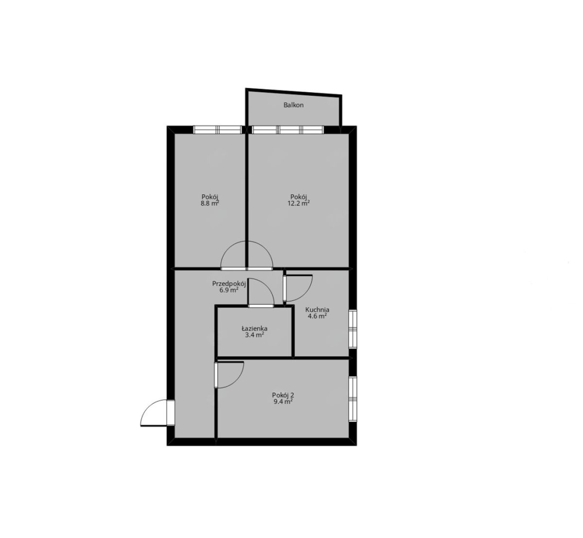 Trzy niezależne pokoje: Optymalny układ pozwalający na wydzielenie sypialni dla rodziców, pokoju dla dziecka oraz przytulnego salonu.